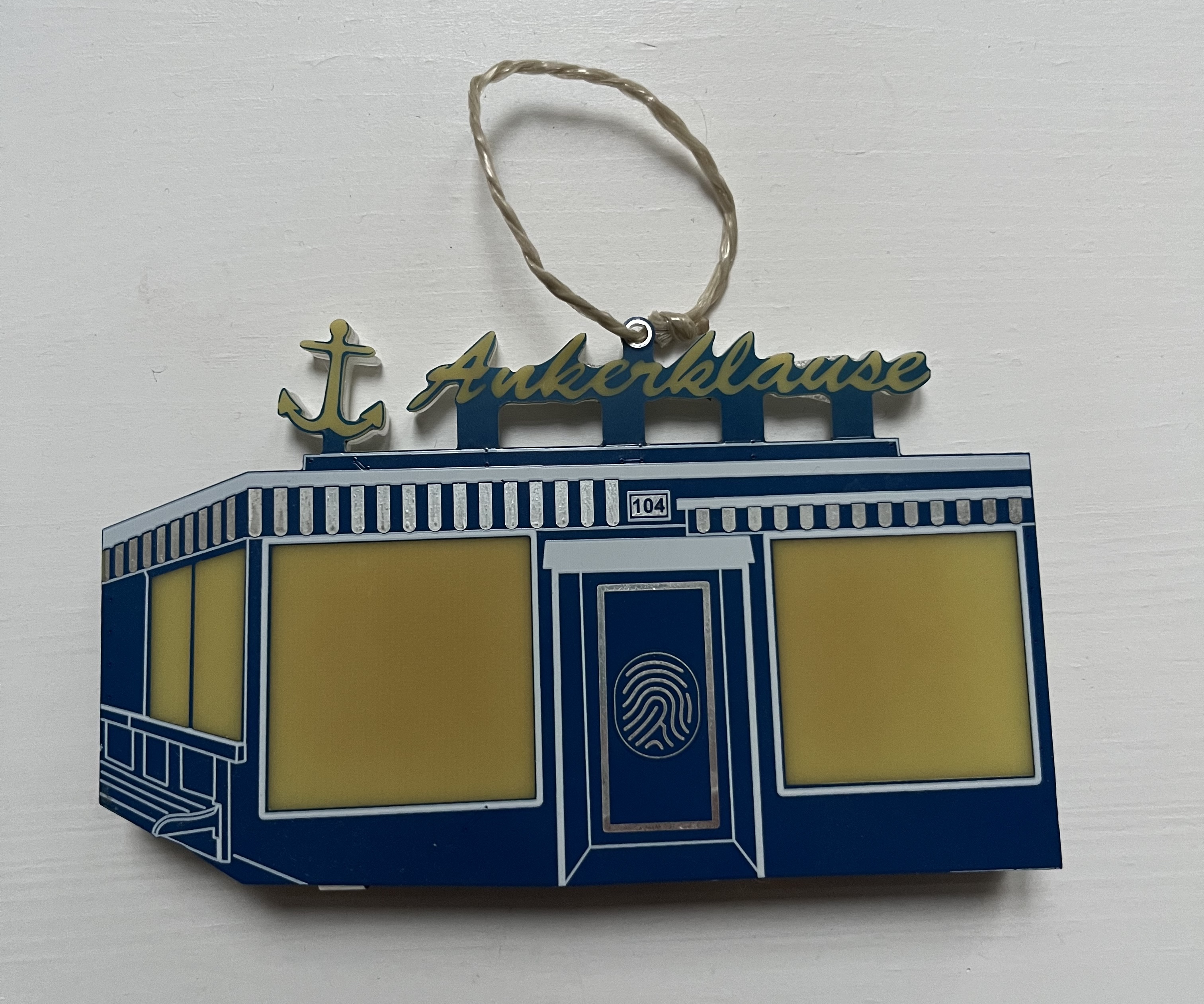 This year’s design is modelled after my favorite local bar. It uses side-mount LEDs diffused through acrylic backing and raw FR4 fiberglass to light through the front of the PCB.