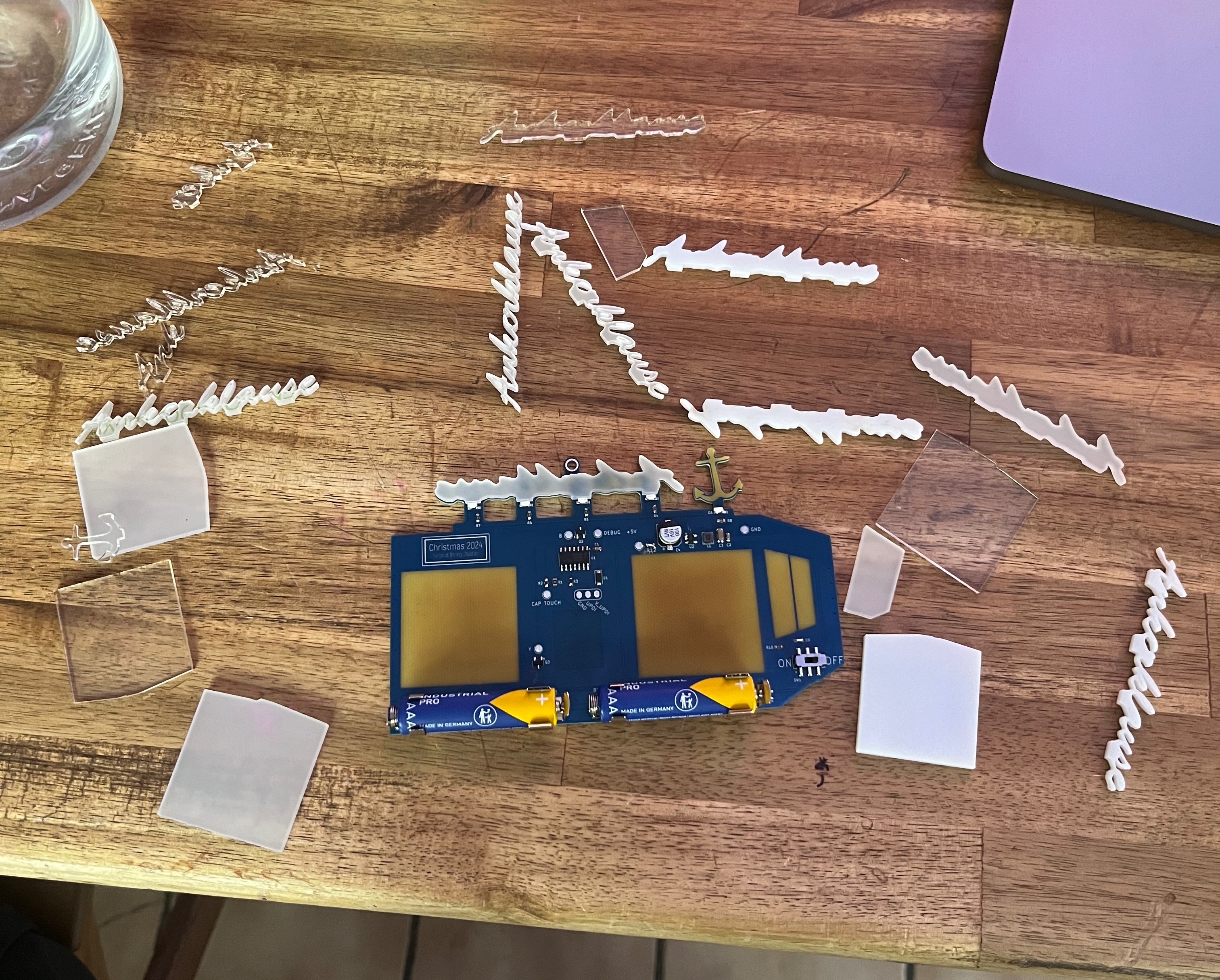 The graphic design was once again done in Inkscape based on the reference photo above. The entire design was manually traced using Bezier curves and adjusted in order to be within the PCB manufacturer’s edge milling capabilities.